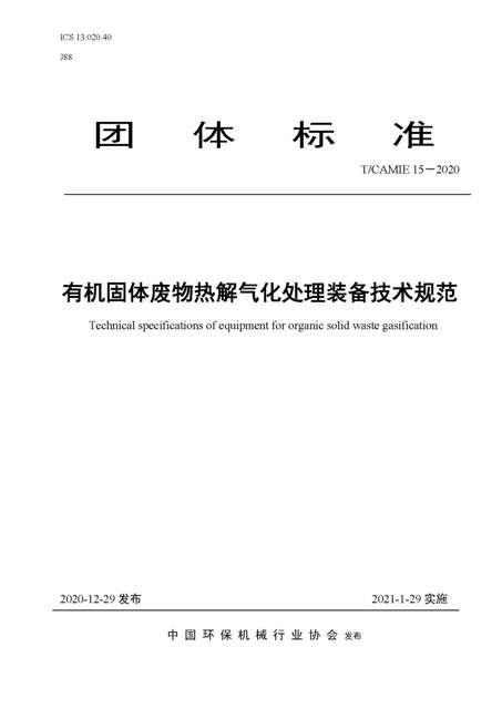 由中國環(huán)保機(jī)械行業(yè)協(xié)會(huì)歸口,中節(jié)能環(huán)保裝備股份有限公司(以下簡稱“中環(huán)裝備公司”)牽頭編制的團(tuán)體標(biāo)準(zhǔn)《有機(jī)固廢熱解氣化處理裝備技術(shù)要求》(以下簡稱《標(biāo)準(zhǔn)》)經(jīng)過立項(xiàng)答辯、標(biāo)準(zhǔn)起草、意見征求、專家審查等環(huán)節(jié),于2020年12月29日批準(zhǔn)發(fā)布,這也是我國首個(gè)有機(jī)固廢熱解氣化處理裝備團(tuán)體標(biāo)準(zhǔn)。