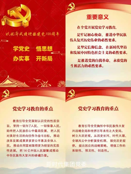 2月20日,習近平總書記在黨史學習教育動員大會上發表重要講話,深刻闡述了開展黨史學習教育的重大意義,深刻闡明了黨史學習教育的重點和工作要求,對黨史學習教育進行了全面動員和部署,為開展好黨史學習教育指明了方向。新時代集團黨委及時組織學習貫徹習近平總書記重要講話精神,第一時間對全系統學習教育作出部署安排,制作宣傳手冊,并將開展黨史學習教育的重大意義和重點內容逐層分解,要求各級黨組織和廣大黨員干部做到學史明理、學史增信、學史崇德、學史力行,從黨史學習教育中汲取智慧力量,以更加昂揚的精神狀態和奮斗姿態,建功新時代,奮進新征程。