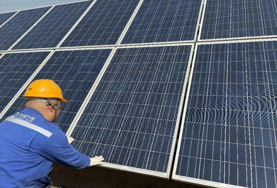 太陽(yáng)能射陽(yáng)電站運(yùn)維人員正在進(jìn)行組件排查工作
