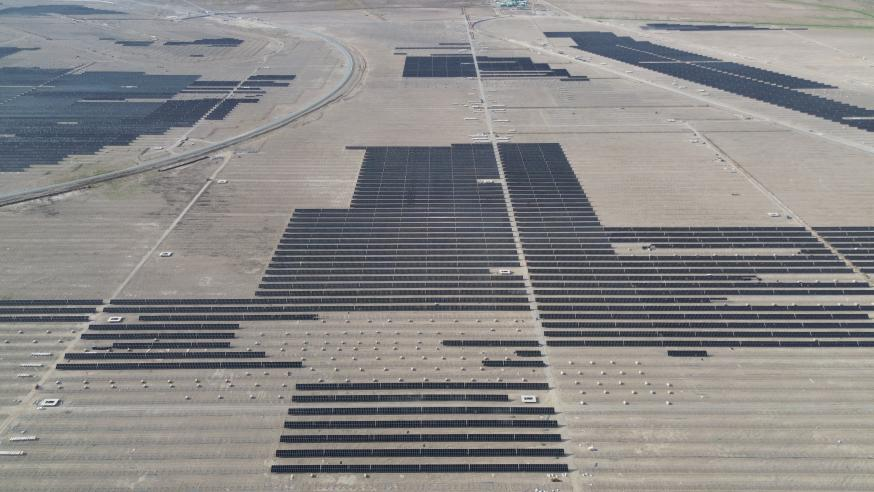 中節(jié)能第十二師產(chǎn)業(yè)園區(qū)低碳轉(zhuǎn)型50萬(wàn)千瓦光伏項(xiàng)目正在進(jìn)行光伏支架和組件安裝工作