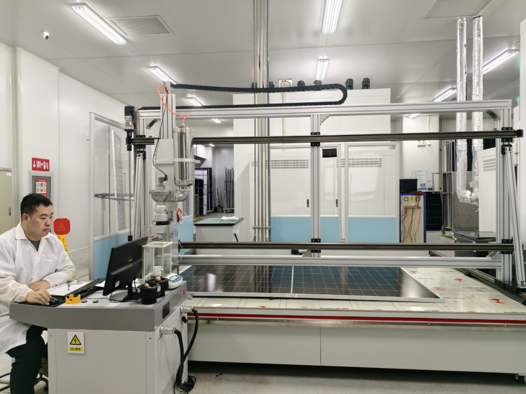 太陽(yáng)能鎮(zhèn)江公司檢測(cè)人員正在進(jìn)行組件量產(chǎn)產(chǎn)品冰雹測(cè)試